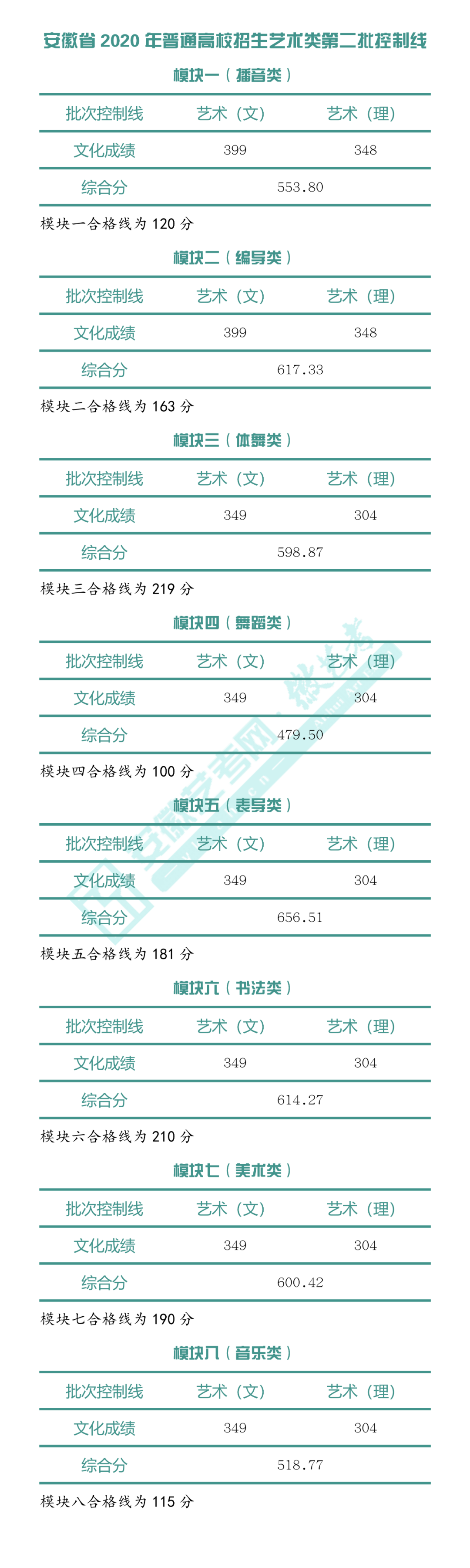 2020年艺术类第二批控制线