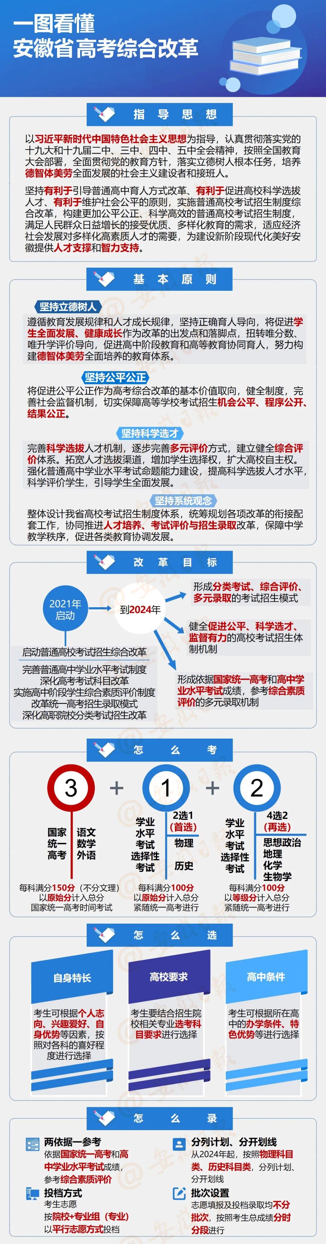 作为全国第四批启动 高考综合改革的7个省区之一 安徽从2021年秋季入学的 高中一年级学生开始 实施高考综合改革